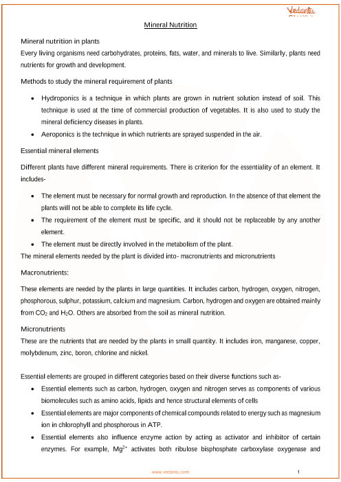 Mineral Nutrition Ncert Notes For Class 11 Download In Pdf